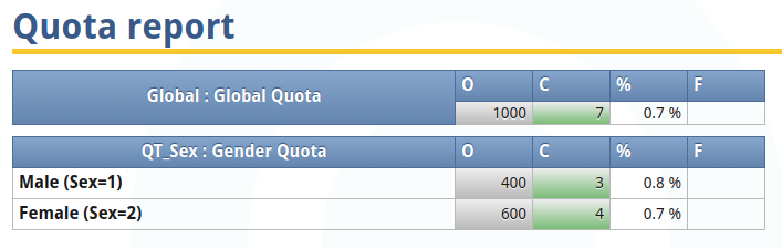 Quota reports are generated showing the targets and the number of interviews carried out.