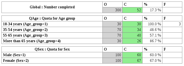 On some surveys there is a requirement to get a preset number of completed interviews for particular groups of respondents. For example to get a predefined number of interviews in each region or from each age group/gender combination.