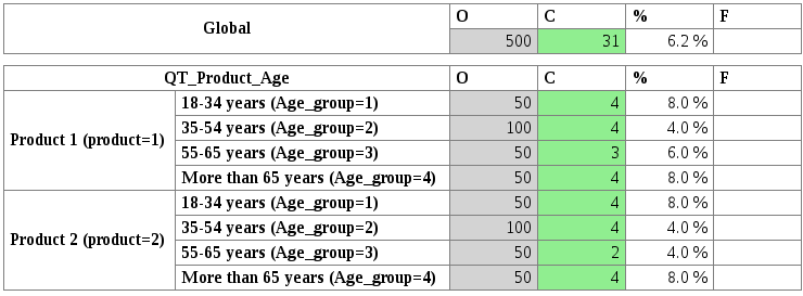 In this example quotas are defined for each of 4 age groups and in each interview one of 2 products is asked about. QUATOASSIGNVALUEP is used to ensure that respondents in each age group are asked about each of the 2 products the same number of times.